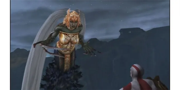 Эта Валькирия, пожалуй, самая простая из всех. Существует пять основных атак, самая опасная из которых — нож. Этот удар нельзя парировать, поэтому, если вы видите, что босса подбрасывает в воздух, бросьте в Атреуса выстрел из лука, чтобы прервать атаку.