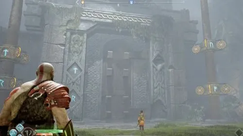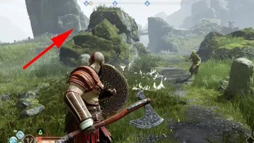 Бальдур делает провокационный жест, и вы тут же начинаете атаковать и стрелять. Фрейя вмешивается, магически опутывает Бальдура и Кратоса лианами и приказывает богам прекратить борьбу.