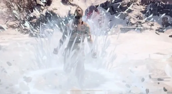 Все это осложняется периодическим вмешательством Фрейи/Тамура. Это включает в себя мощную атаку рукой, которая посылает широкую ударную волну по льду, сбивая с ног всех трех бойцов.