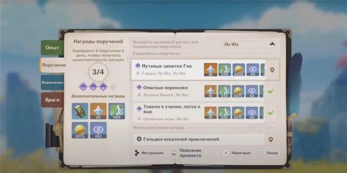 Кроме того, вы получите стандартную награду за квест. Это 10 камней-источников, Мора, опыт дружбы, очки приключений и бустерная руда (количество зависит от класса приключений).