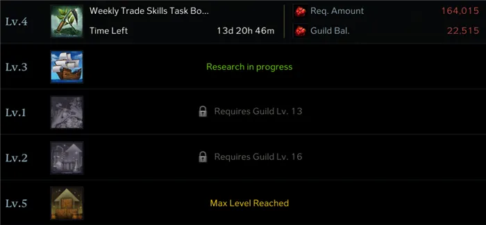 В начале пути гильдии необходимо провести как можно больше исследований. Ему также нужны активные игроки, которые будут поддерживать исследование и регулярно выполнять еженедельные задания.