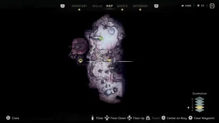 После того, как вы очистите Дюну в рамках сюжетных миссий, вы можете вернуться туда — либо в рамках нескольких побочных квестов, либо просто спустившись на лифте в Скрытом угольке. Вы найдете следующую точку Vista Point среди руин, у большого знака «FatShake», показанного на изображении выше. Это место, где бродят Snapmaw и другие машины, так что очистите их, если вы еще этого не сделали.
