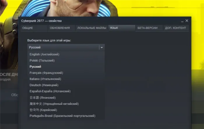 Во-первых, выключите их, если они работают. Затем перейдите в библиотеку Steam, щелкните правой кнопкой мыши на игре, перейдите в «Свойства» и откройте раздел «Язык». Там выберите «Русский».
