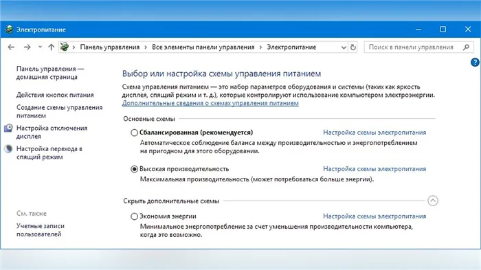 - В списке выбрать «Высокая производительность»;