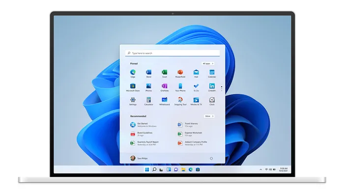 - Меню «Пуск» в Windows 11 ориентировано на панель задач и оптимизировано для быстрого поиска нужной информации.