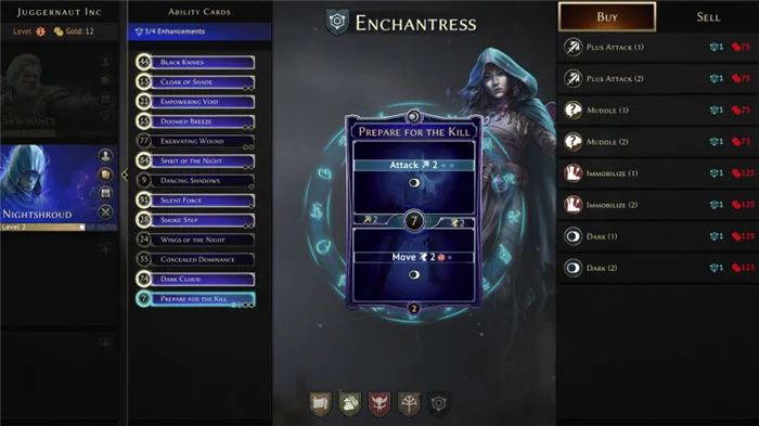 Внешне этот механизм может показаться несколько громоздким, но, во-первых, к нему очень быстро привыкаешь. Навыки распределены по картам так, чтобы вы могли выбрать предпочтительную комбинацию для любой конкретной ситуации, что не идеально. Например, вы не можете переместить персонажа в тот же раунд, если хотите нанести дополнительную единицу урона перед сильной атакой или столкнуть монстра в ближайшую ловушку. Вы должны заплатить за атаку в свой ход своим здоровьем или возможностью сыграть что-то полезное — например, подкрепление, чтобы помочь союзнику. Побежденные враги оставляют вам монеты. Монеты можно использовать для покупки снаряжения между сценариями, но чтобы их получить, необходимо закончить раунд, в котором погиб противник. В противном случае ценная добыча будет потеряна.