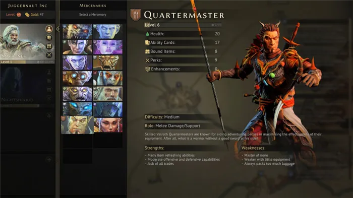 На первый взгляд, все довольно просто. Игра разделена на несколько сценариев, включая путешествие по карте мира. Сценарии представляют собой отдельные подземелья с цепочкой комнат, в которых группа наемных солдат должна достичь определенной цели. Очистите территорию от врагов, победите босса, продержитесь в живых определенное количество раундов или получите сундук с сокровищами по стандартной программе. Далее следует интересное место. У каждого персонажа есть своя колода навыков, только у каждой карты в колоде есть два исхода. Нижняя обычно вызывает движение, защиту и различные вспомогательные средства, а верхняя — нападение и исцеление. В результате во время раунда солдаты merc одновременно вытягивают две карты, выбирая низший результат одной картой, а высший — другой.