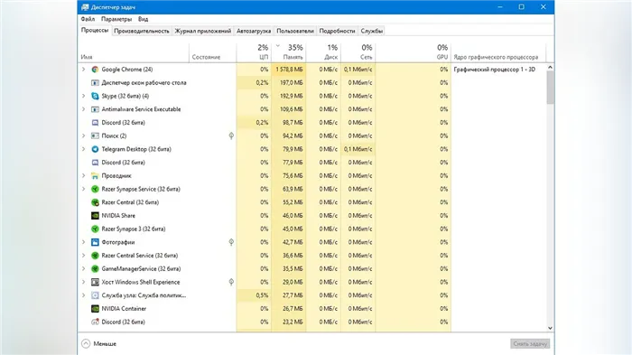 Каждая программа, работающая в операционной системе, требует определенного объема оперативной памяти и создает нагрузку на центральный процессор. Это легко увидеть, просто откройте диспетчер задач с помощью Ctrl+Alt+Del:
